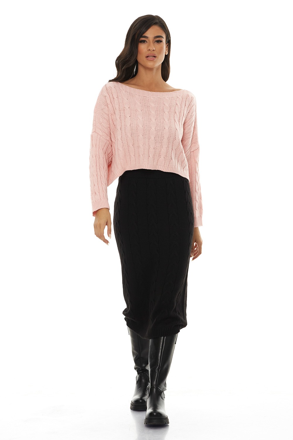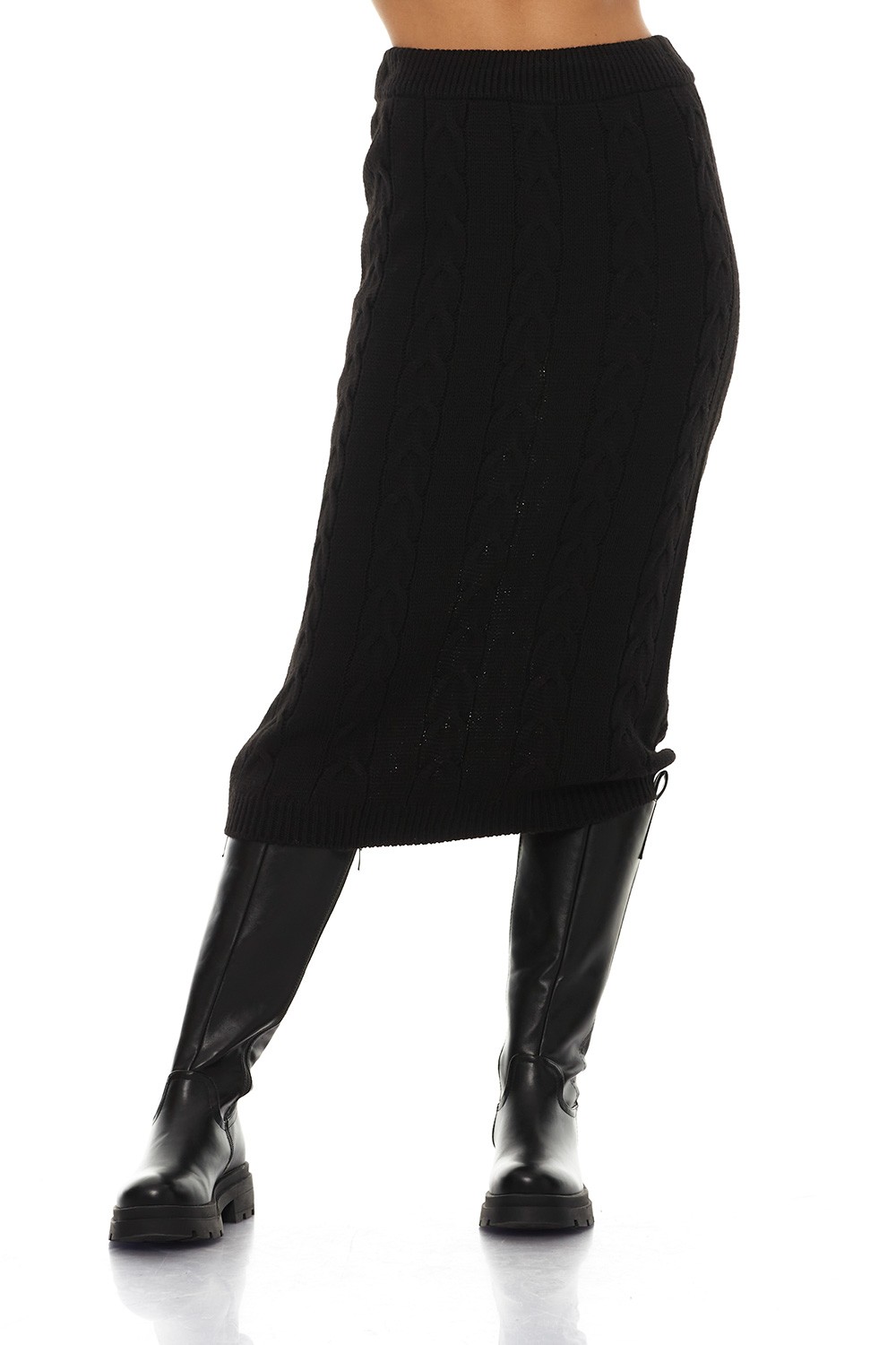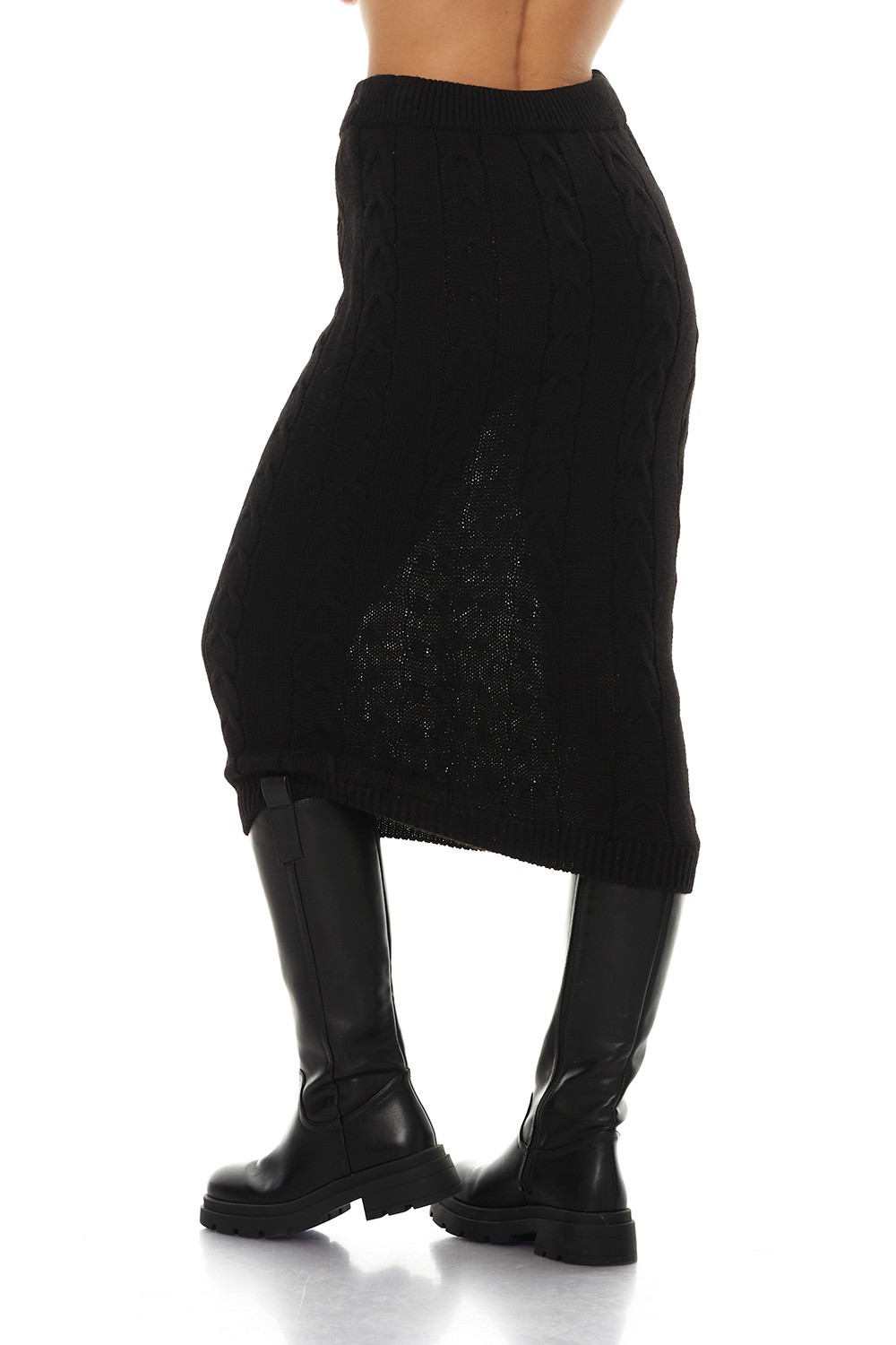 Midi Knitted Black Skirt- Μίντι Πλεκτή Μαύρη Φούστα