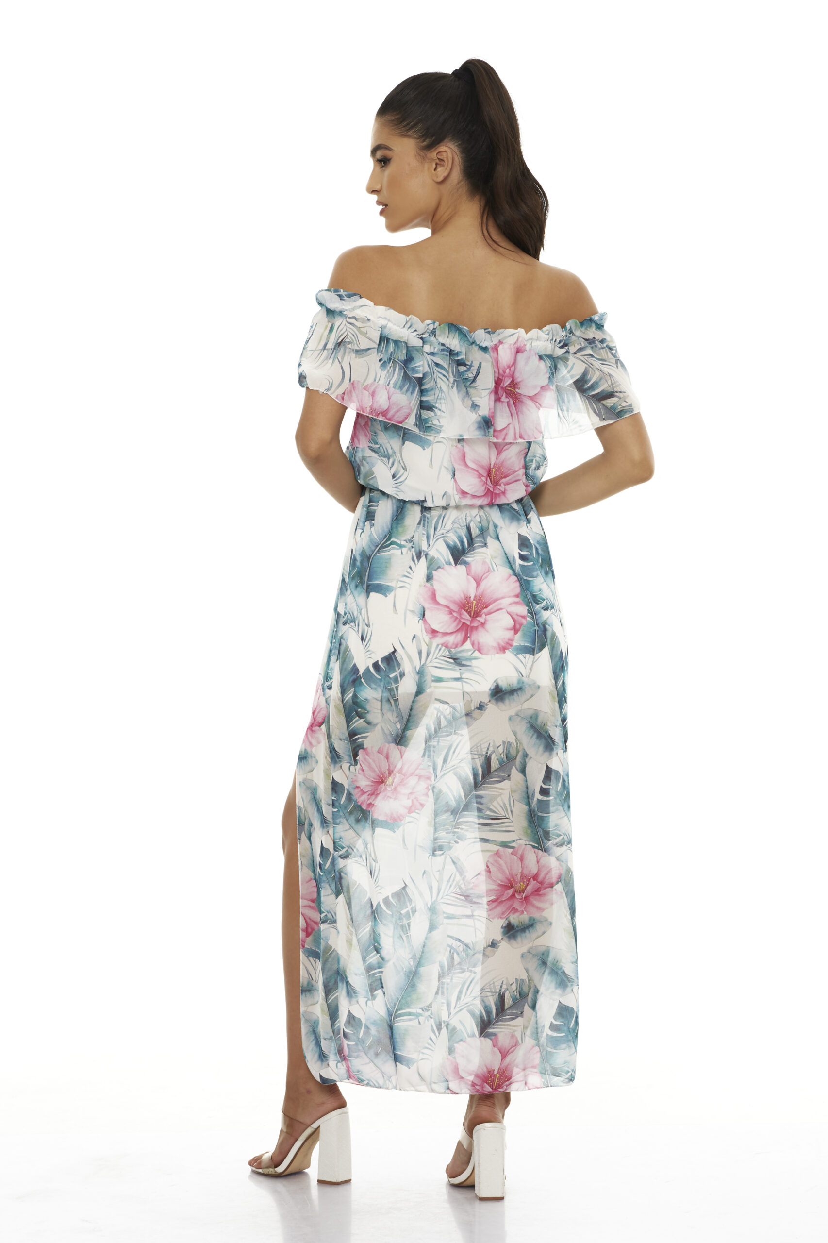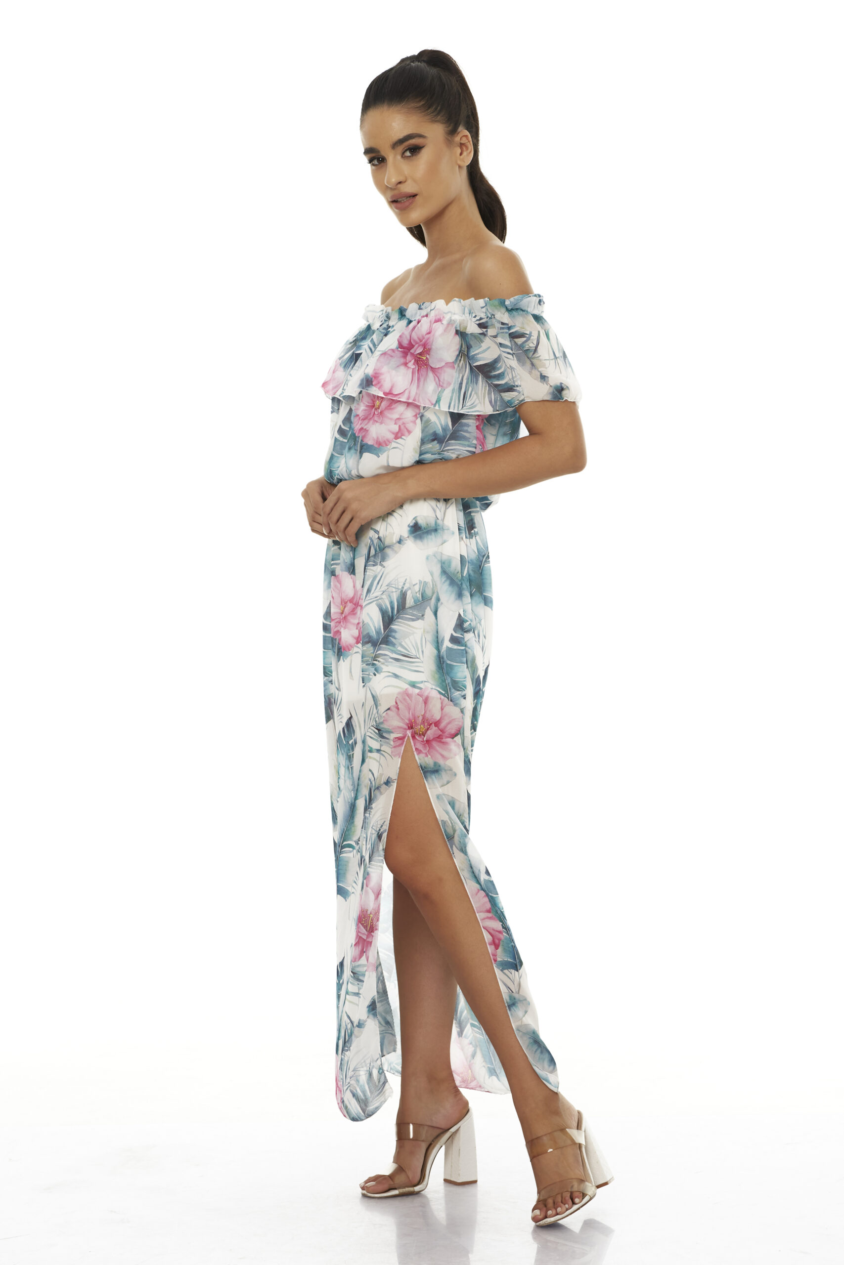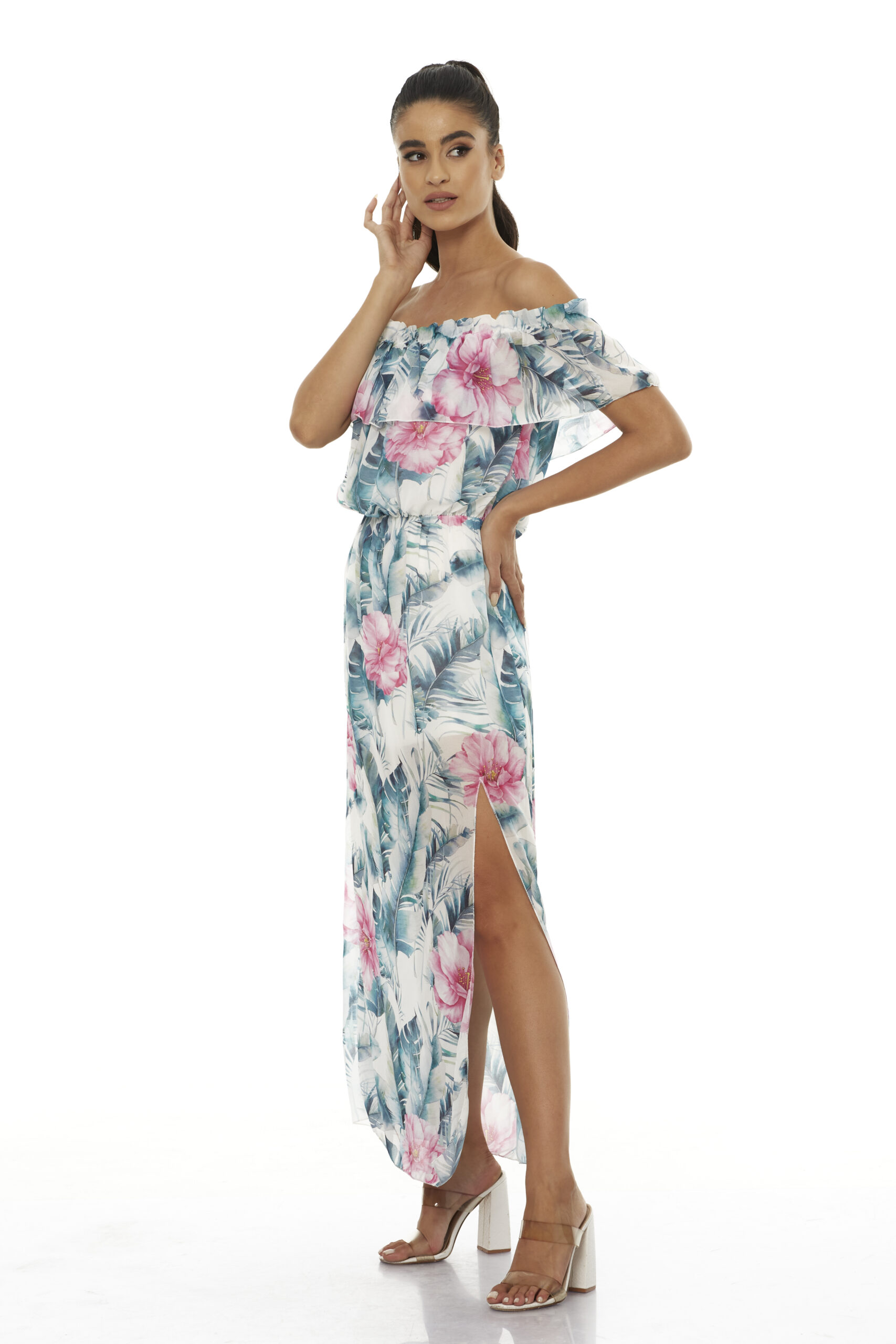 Dress With Floral Pattern and Open Leg- Φόρεμα Με Φλοράλ Μοτίβο και Άνοιγμα στο Πόδι