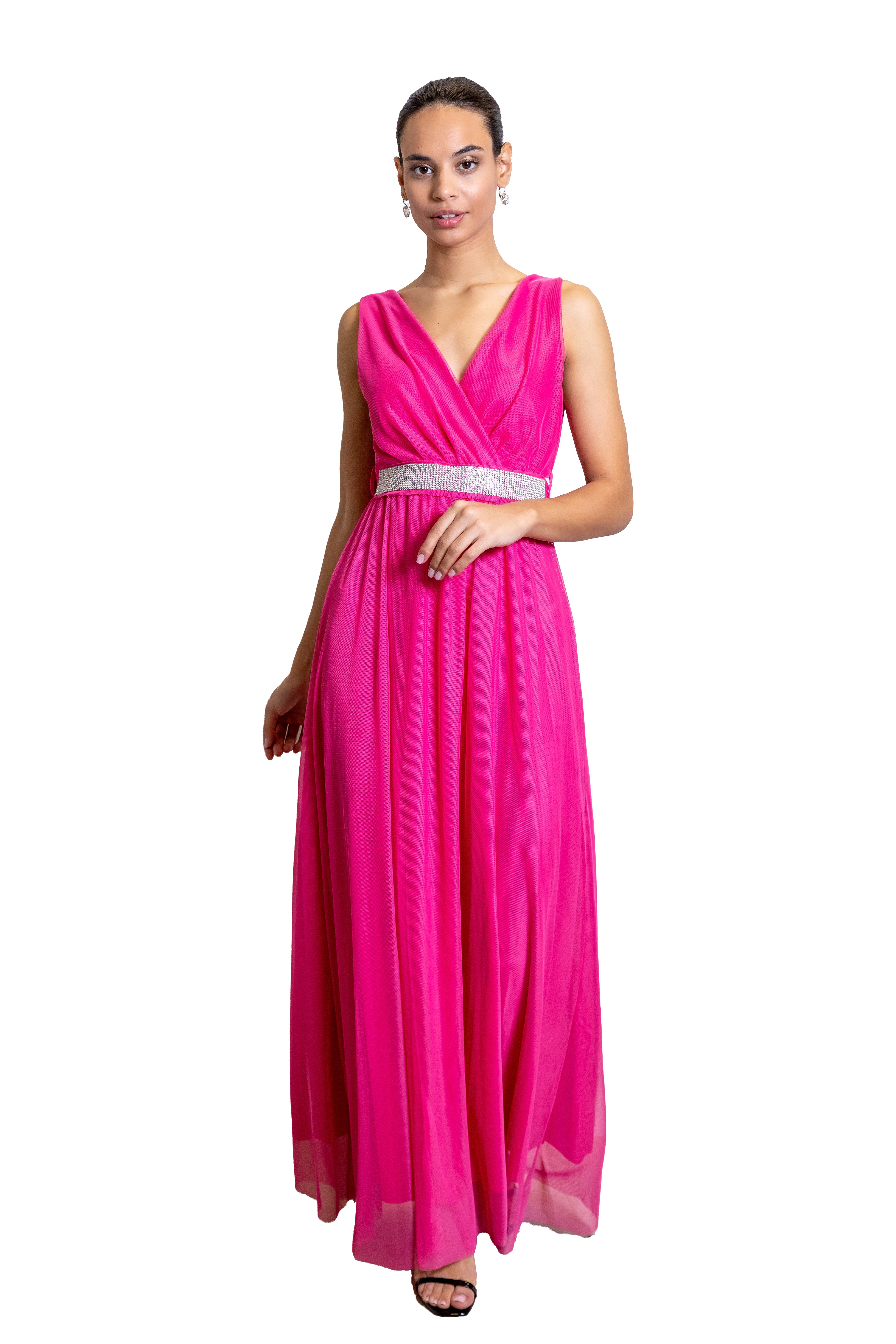 Αρχική σελίδα Ένδυση Φορέματα Βραδινά Φορέματα Φόρεμα Φουξ Μάξι Με Τούλι Και Ζωνάκι Στρας
