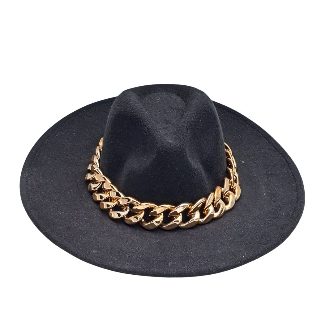 Γυναικείο Καπέλο Μαύρο με Χρυσή Αλυσίδα #2