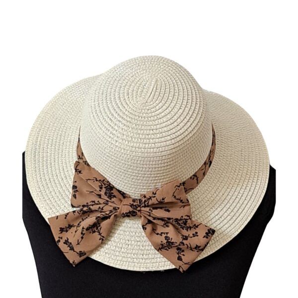 Γυναικείο Καπέλο Ψάθινο Λευκό με Φιόγκο #5