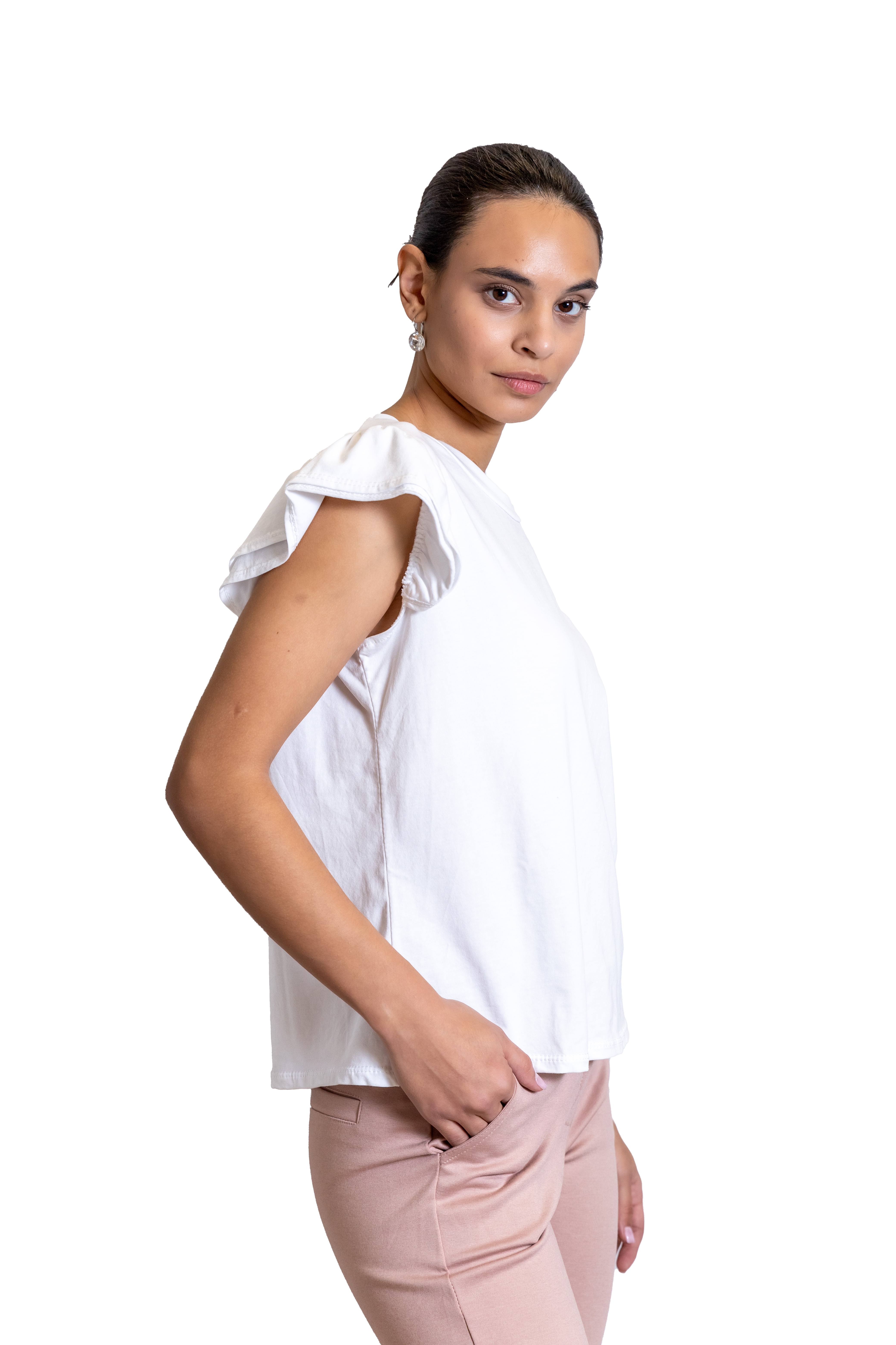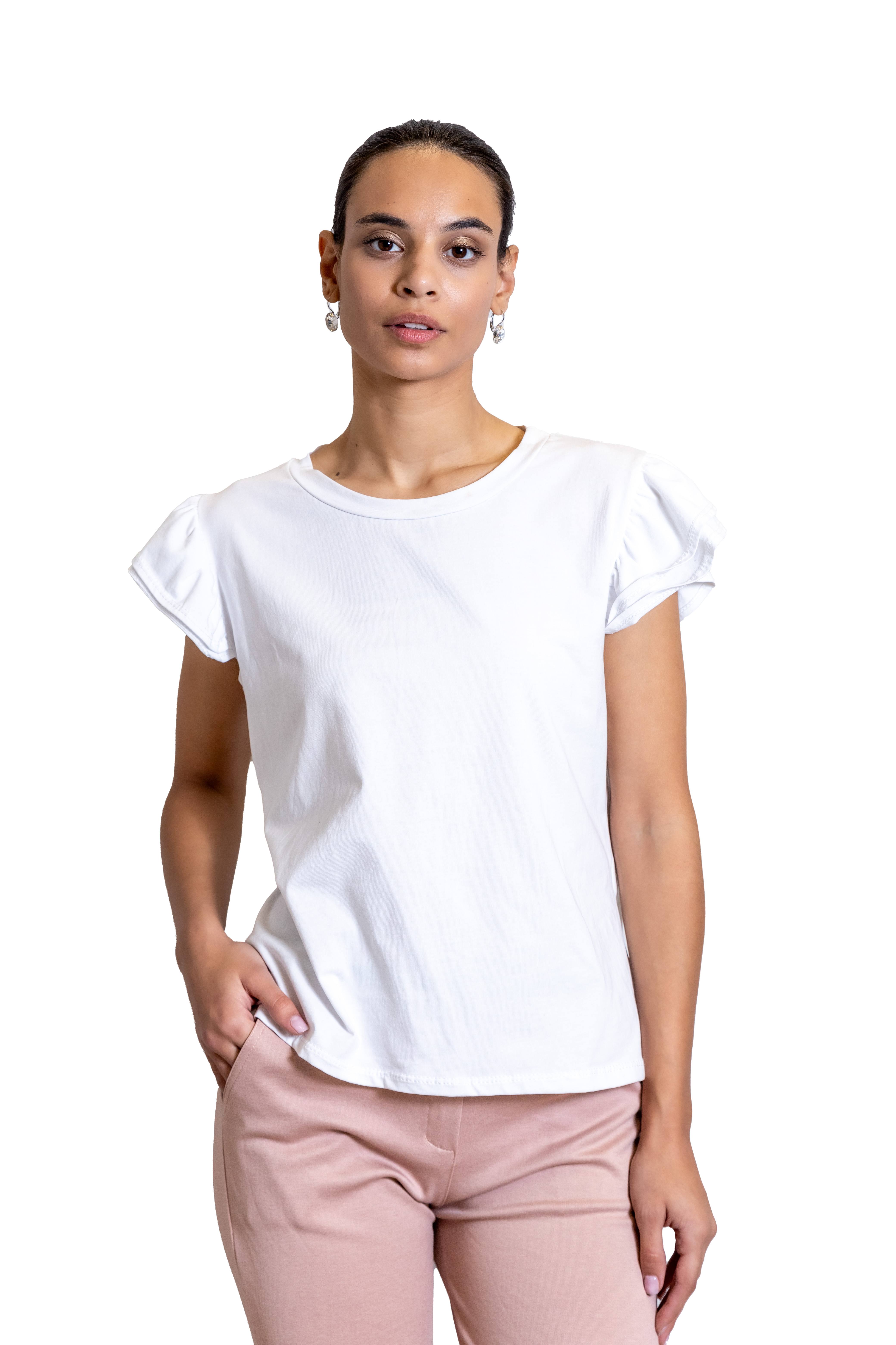 Γυναικείο Κοντομάνικο Λευκό Με Ιδιαίτερο Μανίκι
