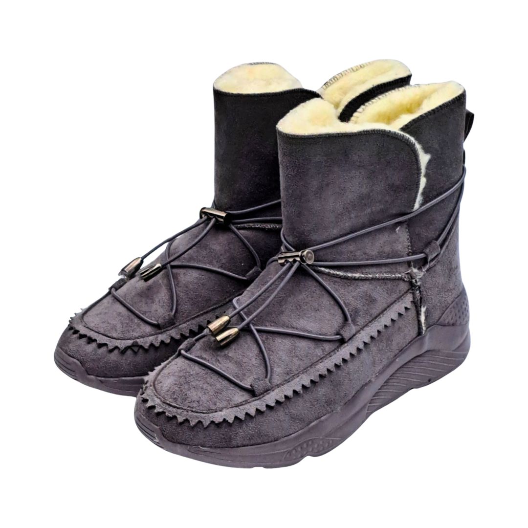 Μονόχρωμα μποτάκια γκρι σουέτ με εσωτερική γούνα και κορδόνια.