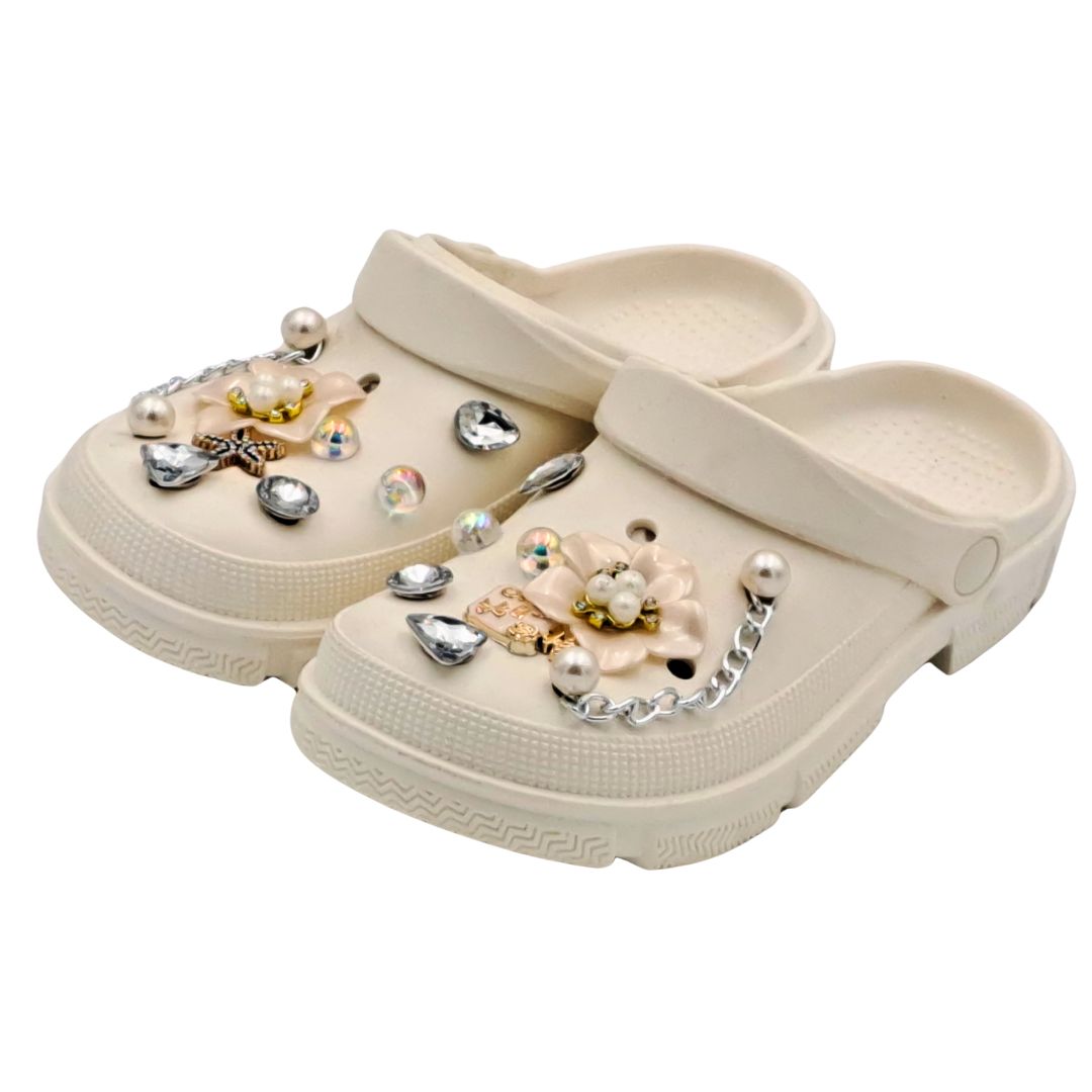 Σαγιονάρες Crocshi Άσπρες με διακοσμητικές χάντρες