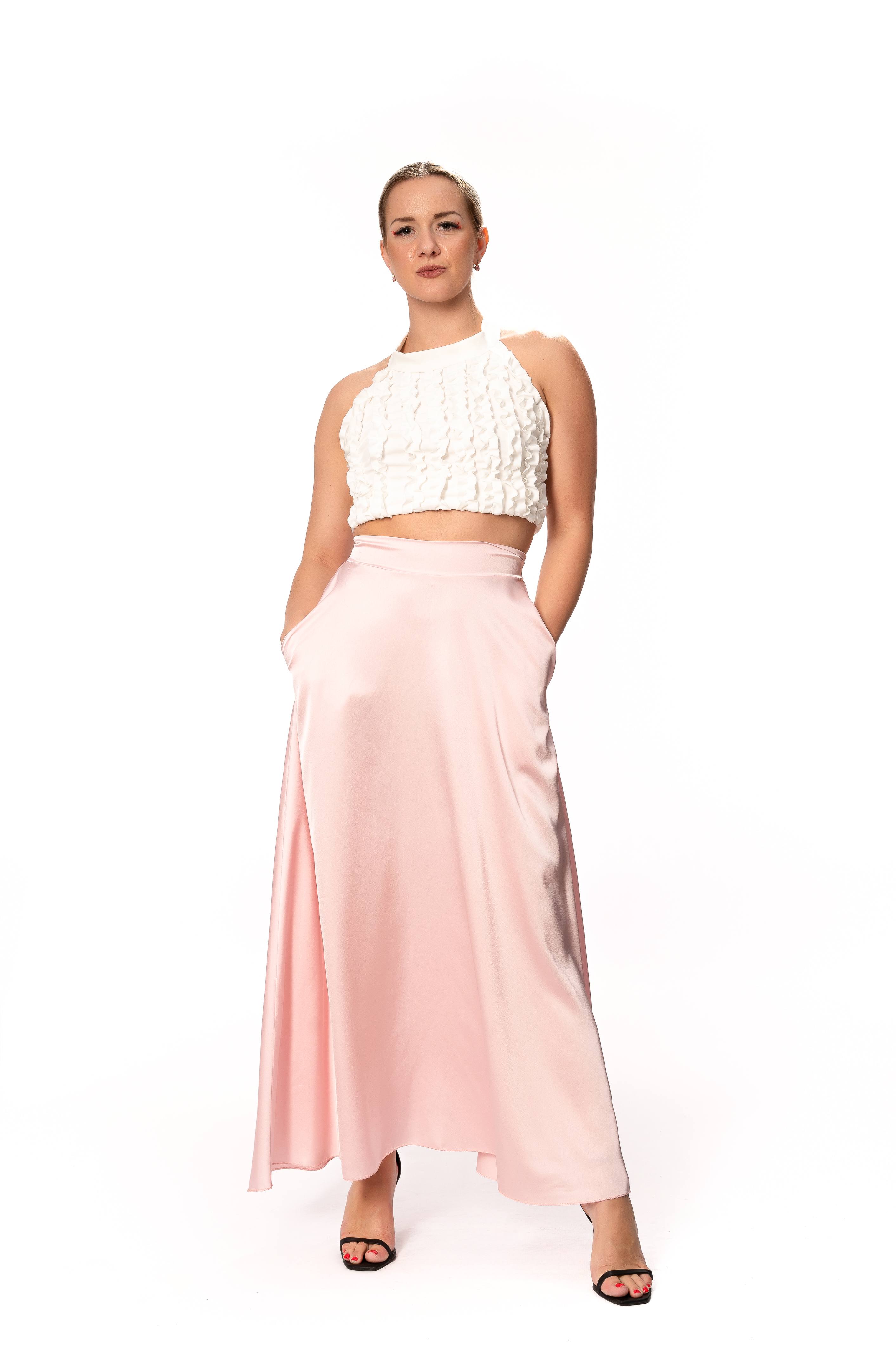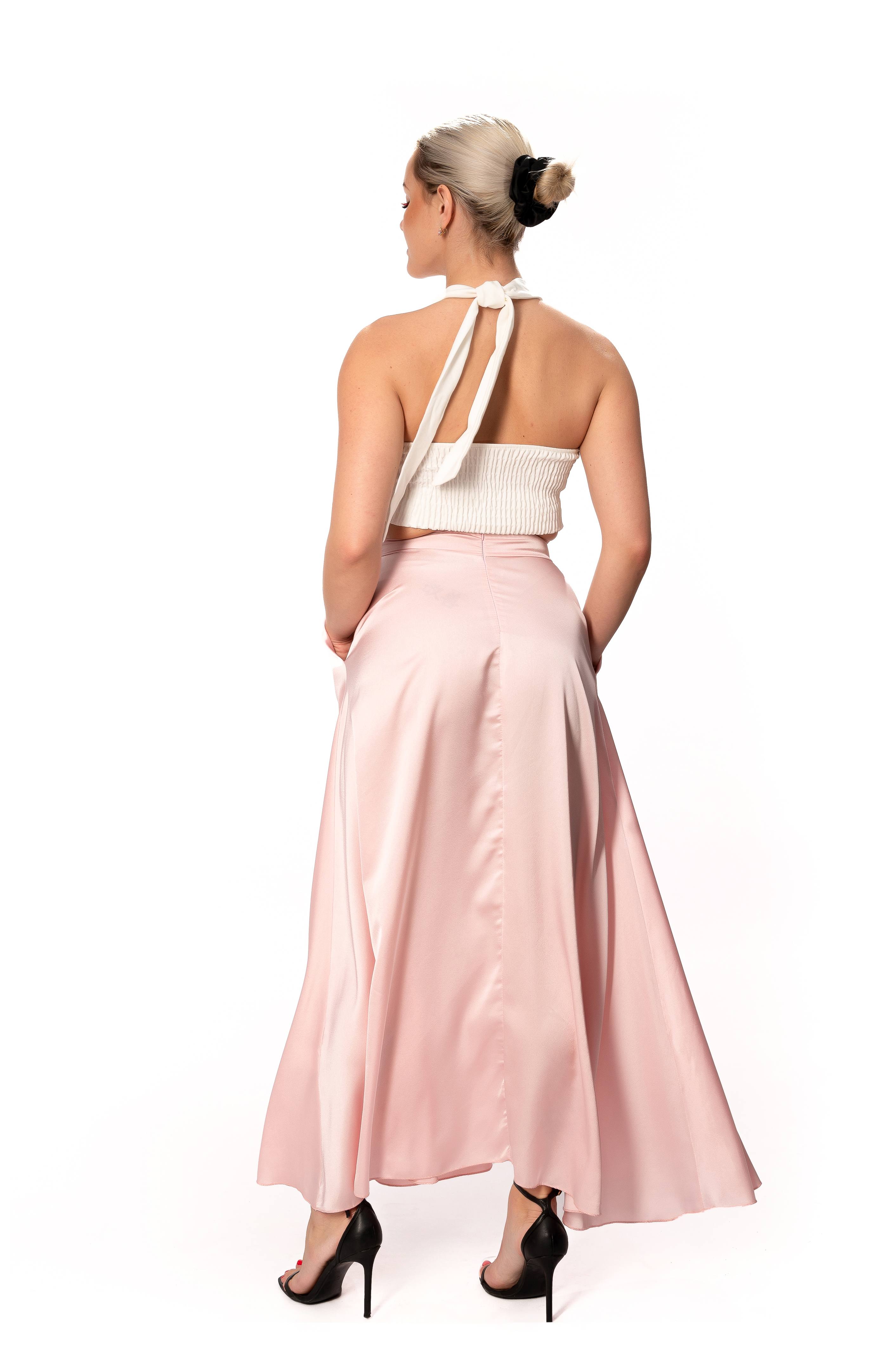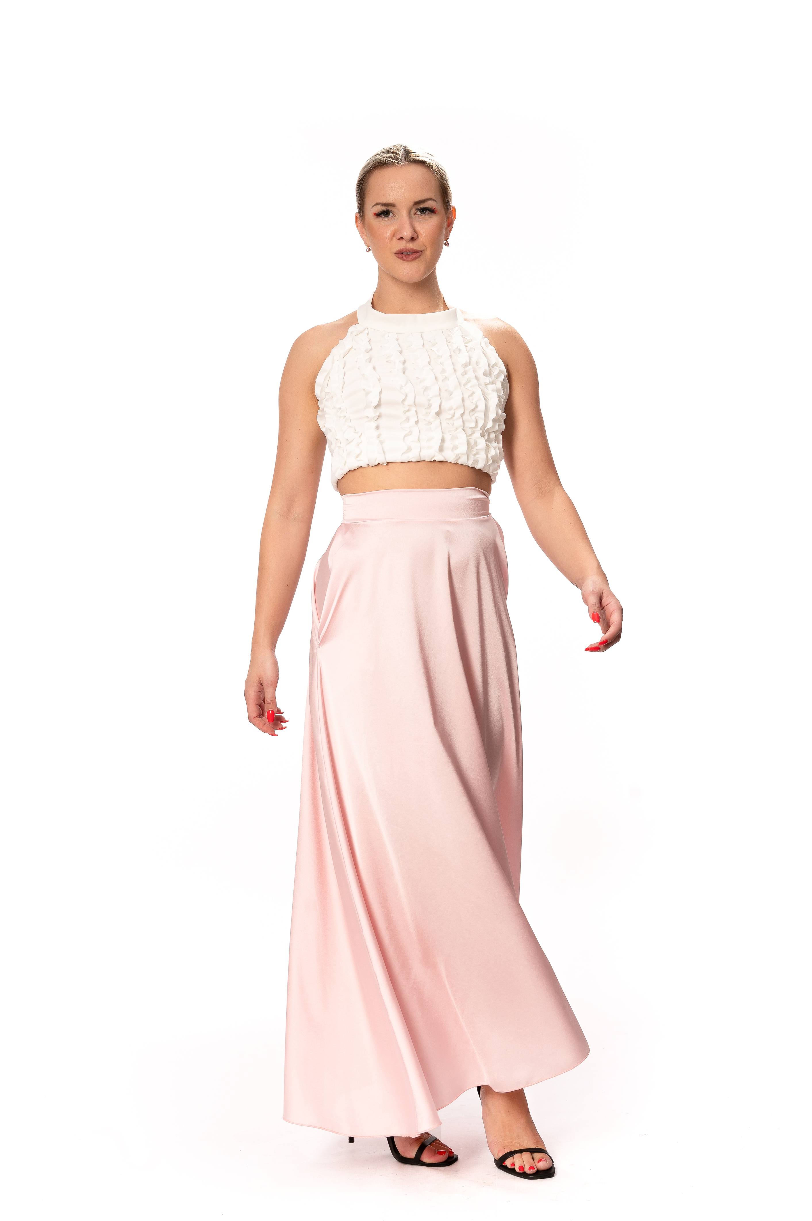 Σετ Σατέν Μακριά Φούστα Ροζ Με Τοπ Φρου-Φρου