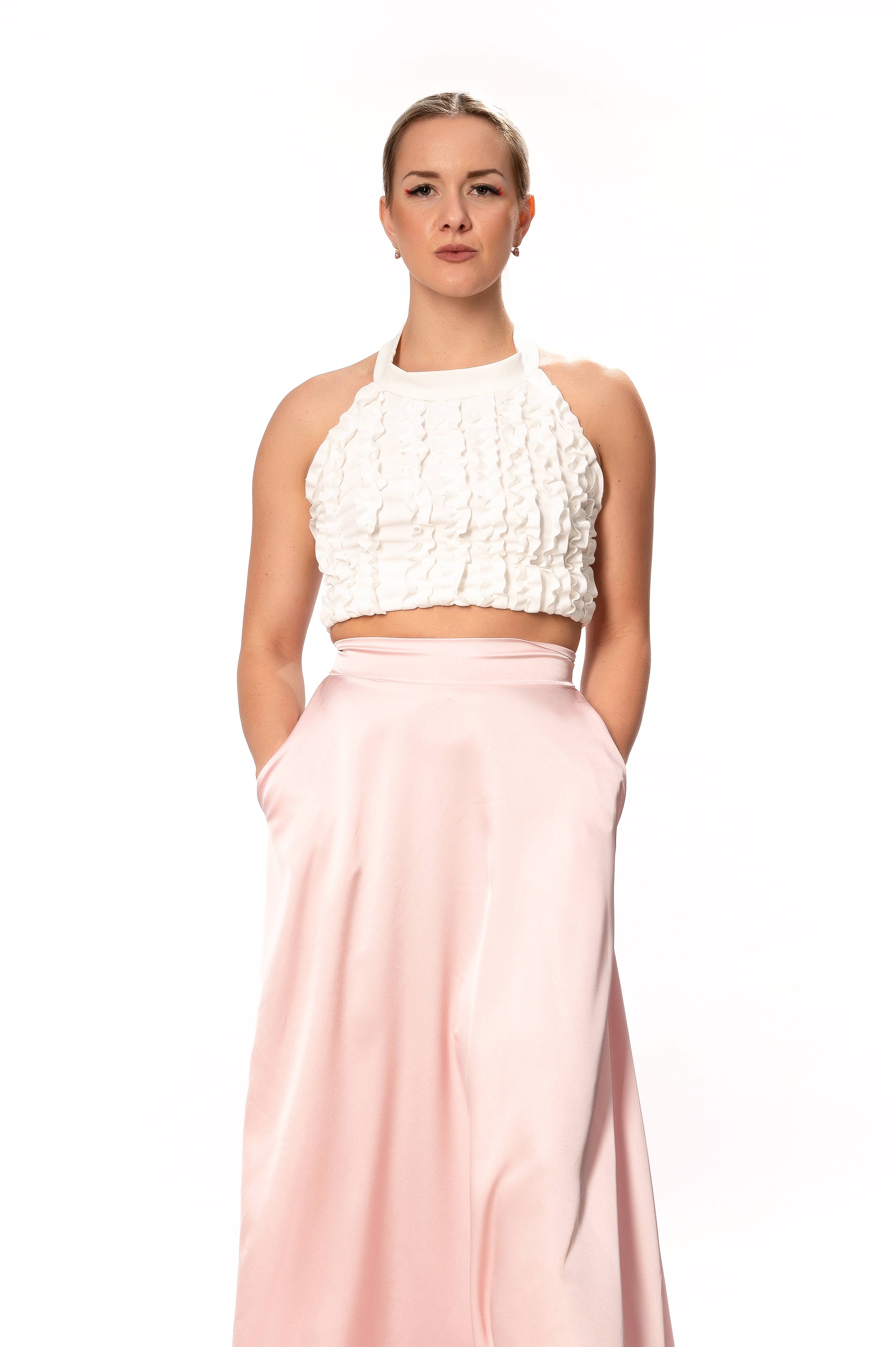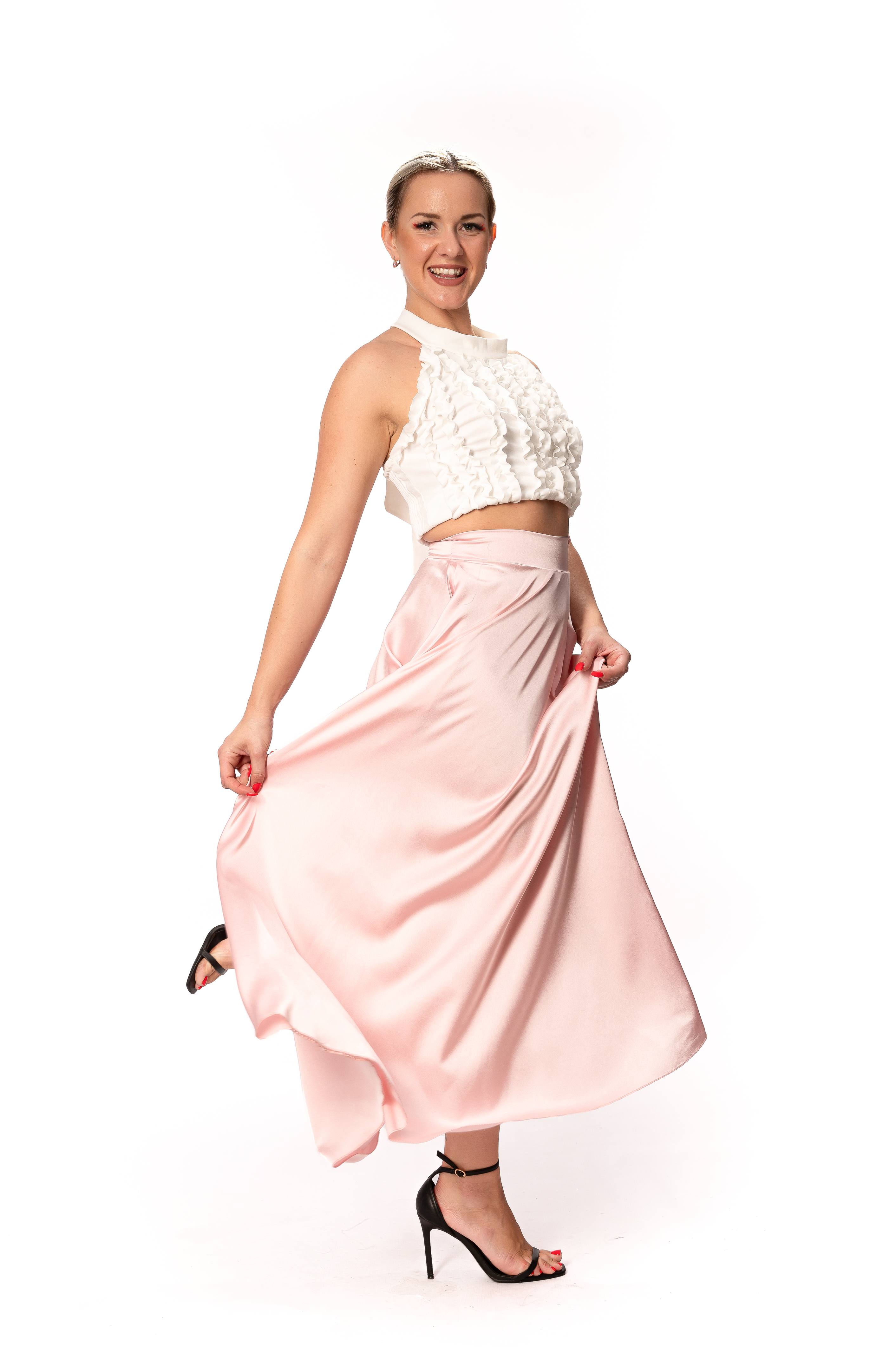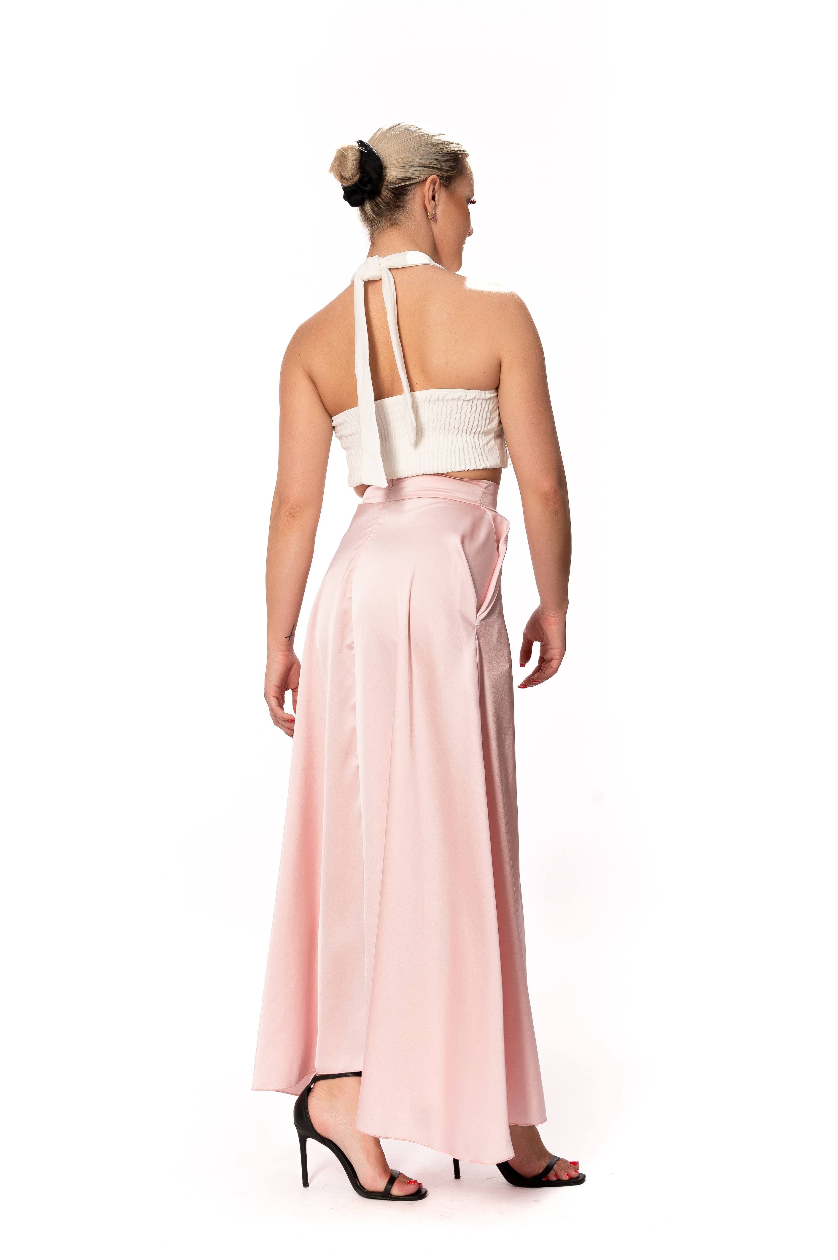 Σετ Σατέν Μακριά Φούστα Ροζ Με Τοπ Φρου-Φρου