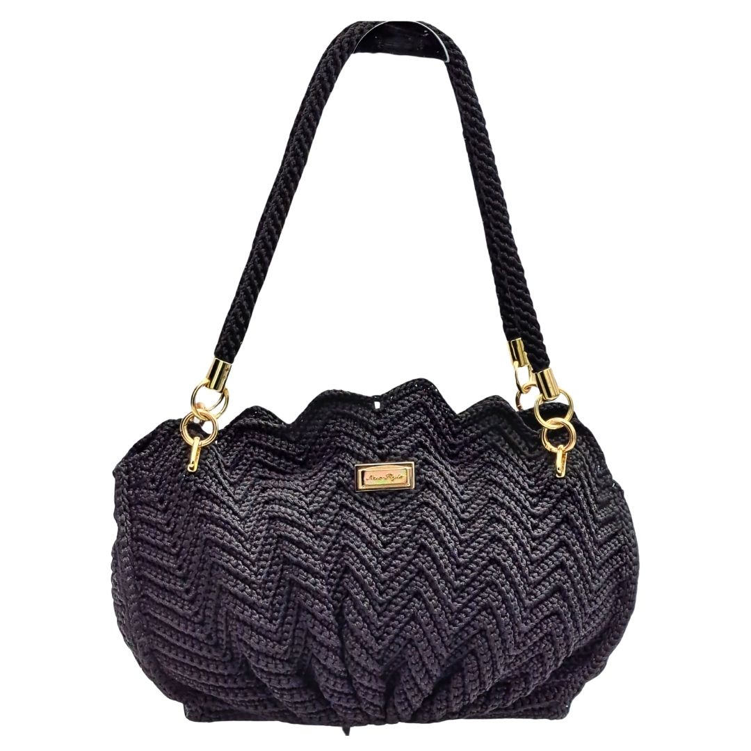 Τσάντα Μαύρη Πλεκτή Κοχύλι Χειροποίητη